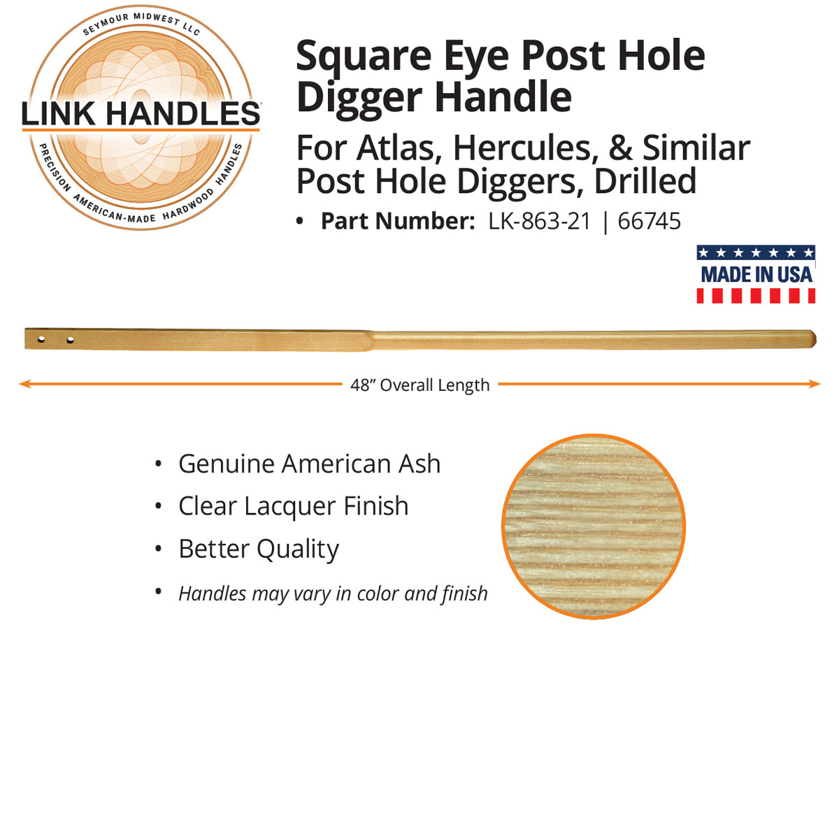 48" Square Eye Post Hole Digger Handle